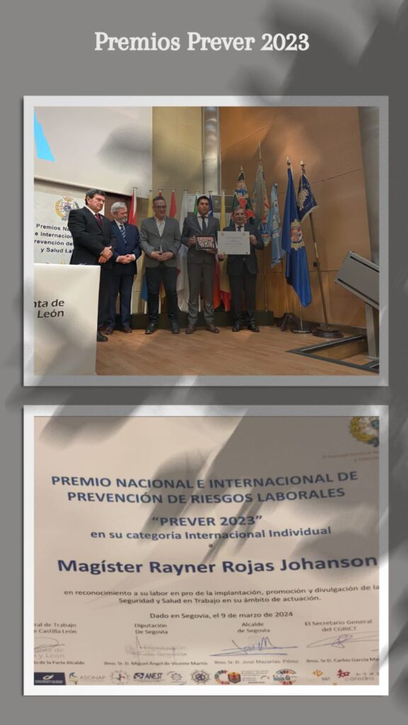 Nuestro Gerente Rayner Rojas fue premiado en la categoría INTERNACIONAL – INDIVIDUAL, premio que va dirigido a personas físicas en activo que destacan por su trayectoria y buen hacer en la implantación y difusión de la prevención de los riesgos laborales en nuestro país.